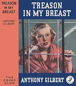 Treason in My Breast is a 1938 mystery detective novel by Anthony Gilbert, the pen name of British writer Lucy Beatrice Malleson.[1][2] It is the fourth in her long-running series featuring the unscrupulous London solicitor and detective Arthur Crook.[3] Crook became one of the established characters of the Golden Age of Detective Fiction, although in this case the novel was more similar to a Victorian melodrama than a conventional whodunnit.