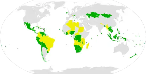 According to the International Campaign to Abolish Nuclear Weapons (ICAN), a coalition of non-governmental organizations, leading proponents of a nuclear weapons–ban treaty include Ireland, Austria,[48][49][50] Brazil, Indonesia, Mexico, Nigeria, South Africa and Thailand.[51] All 54 nations of Africa (all but one of which have either signed or ratified the 1996 Treaty of Pelindaba establishing a nuclear-weapon-free-zone in the continent)[52] and all 33 nations of Latin America and the Caribbean (already in a nuclear-weapon-free-zone under the 1967 Treaty of Tlatelolco)[53] had subscribed to common regional positions supporting a ban treaty. The 10 nations of the Association of Southeast Asian Nations (ASEAN), which concluded the Southeast Asian Nuclear-Weapon-Free Zone Treaty, participated in the negotiations, but Singapore abstained from the vote.[8] Many Pacific island nations are also supportive.[54] New Zealand is a signatory to the Treaty and in 2022, Phil Twyford, Minister of Disarmament and Arms Control, noted that the strength of Treaty [is that it] "leaves no grey area for parties to declare their opposition to nuclear weapons and then continue to possess or rely on them. And it provides a powerful tool to build public and political pressure on the nuclear weapon states and their allies to join the rest of humanity and prohibit nuclear weapons." He also confirmed that New Zealand would continue in its role as the co-chair of the workstream on nuclear disarmament verification, in particular addressing "nuclear legacy issues in the Pacific."[55]