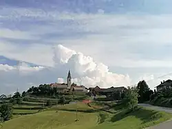 The parish church, built on a slight elevation in the centre of the settlement, is dedicated to the Holy Cross and belongs to the Roman Catholic Diocese of Novo Mesto. It dates to the 16th century and was largely rebuilt in the late 18th century.[3]