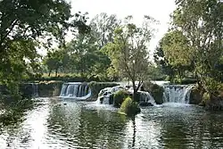A special characteristic of Bosnia and Herzegovina's water systems are the plethora of waterfalls dotting the landscape. Among the most beautiful and biggest are the: Štrbački cascade (23.5 m high – quantitatively the biggest waterfall in Bosnia and Herzegovina), Martin Brod on the Una River, Pliva Falls in Jajce (27 m), Kravice Falls and Koćuša falls on the Trebižat River.[2]