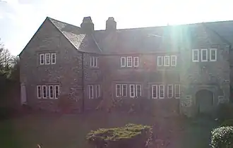 The entrance archway has an inscription "1631" but it is likely that the house had its origins at an earlier date than that. It is a two-storey house built of rubble stone with a regular slate roof. The chimney stacks are also rubble and have seventeenth century granite caps. The house has an E-shaped plan, with a central, two storey porch and two wings at either end with gable ends. On the upper storey there are 3-light mullion windows, with two sets between the projecting left wing and the porch, one set to the right and one set on each side of the wings and of the porch. On the ground floor, there are 4-light mullion windows with a central wide mullion, set symmetrically below the first floor windows.[1]