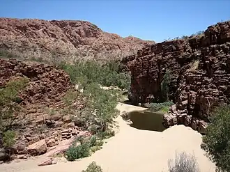 Trephina Gorge is a gorge in the Northern Territory of Australia located in the locality of Hart in the East MacDonnell Ranges about 85 kilometres (53 mi) east of Alice Springs.[3][2]