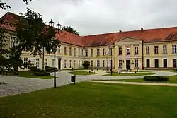 In 1750 the local palace was refurbished in classicist style for General Frederick Eugene of Württemberg, who resided there – with interruptions – until 1763. In the late 18th century the Polish noblewoman and writer Maria Wirtemberska née Czartoryska resided at the palace,[4] and her early works and translations were created here. The painter Jan Rustem visited her several times, and his paintings were part of the palace's art collection. The palace now houses a State public library, founded in 1946 and named after Maria Wirtemberska née Czartoryska since 1999.