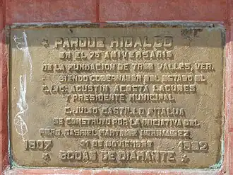 November 21, 1907, is considered the founding date of the city of Tres Valles. However, the exact date is unknown. The earliest record with that date in 1982, when a commemorative monument to Miguel Hidalgo was placed in the city's central park. It seems that during the process of building the monument, the date was established. There's also a document dated November 24, 1939, stating that the founding was "32 years ago", that is, around 1907.