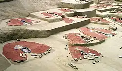 Based on archaeoastronomical surveys, scholars concluded, that the Mesolithic Lepenians used a solar calendar and that the place was planned according to this phenomenon even determining the shape of their houses. The starting point of their calendar was therefore the "double sunrise" i.e. the Sun appears above Trescovăț, then goes behind its outcropping and reappears again. From that day, the Lepenians observed how the dawn point shifts to the right and shortens the day, until the winter solstice.[4][5] Others claimed that Lepenski Vir was an ancient Sun and Pleiades constellation observatory with Trescovăț as a natural marker.[6]
