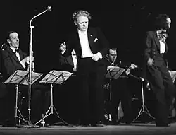 At the 1927 Baden-Baden festival of contemporary chamber-music, pioneering sound films with original scores by leading avant-garde composers were shown at special 'Film and Music' sessions. Walther Ruttmann's abstract experimental film Opus III (1924), with an original score for chamber orchestra by Hans Eisler, was shown twice: firstly as a silent film with the music performed live and synchronized using Blum's Musikchronometer, and then as a sound film (no longer extant) using the Tri-Ergon process.[26][27] The sound-film recording was supervised by Bagier, now working for Tri-Ergon-Musik A.G.[14]