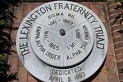 The Lexington Triad is a group of three fraternities founded immediately after the Civil War by students from two colleges in Lexington, Virginia: Alpha Tau Omega, Kappa Alpha Order and Sigma Nu.[4]