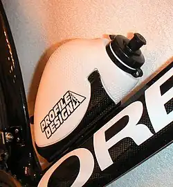 A number of products have been created to satisfy triathlete's demands for aerodynamic hydration systems. Examples include the Aerodrink system by Profile Design, an aero bottle that hangs from the handlebars with a straw so the athlete can drink without using his hands; and the Neverreach system, a teardrop-shaped reservoir mounted behind the seat with a tube running up to the handlebars. In addition, certain high-end triathlon bicycles have a hydration system integrated into the frame's tubing itself.[15]
