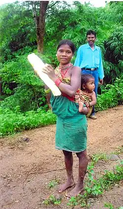 There are 43 recognized Scheduled Tribes in Madhya Pradesh, India, three of which have been identified as "Particularly Vulnerable Tribal Groups" or "PTGs" (formerly known as "Special Primitive Tribal Groups"). The population of Scheduled Tribals (ST) is 21.1 per cent of the state population (15.31 million out of 72.62 million), according to the 2011 census.[1] Bounded by the Narmada River to the north and the Godavari River to the southeast, tribal peoples occupy the slopes of the region's mountains.