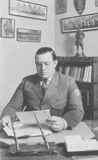 Bartle was inspired to create the organization after serving as the Scout Executive for the Cheyenne Council of the Boy Scouts of America in Casper, Wyoming, from 1923 to 1925.[2][3] Bartle became interested in the heritage and culture of the many Indian reservations in Wyoming. He spent many hours listening to stories about the Indian tribes and soon began to incorporate Indian values and ideals into his Scouting program. Bartle claimed he was inducted into a local tribe of Arapaho based on a reservation served by the Scout council, and according to traditional Micosay legend, was given the name Lone Bear by the Chief.[4][5]
