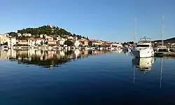 Tribunj is a village and a municipality in Šibenik-Knin County, Croatia. It is located about three kilometers northwest of Vodice and is known for its peaceful waterfront cafes. The municipality has only one settlement, Tribunj, and a hamlet Sovlje, to the west. The municipality was formed in 2006, when the village of Tribunj separated from the Town of Vodice. Tribunj is the birthplace of famous pop-folk artist Mišo Kovač.