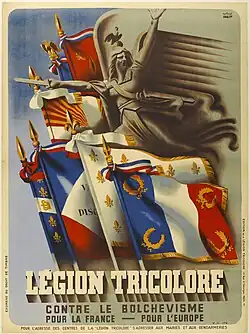 The Tricolour Legion (French: Légion Tricolore), which existed almost entirely on paper between 22 June 1942 and 28 December 1942, was an initiative of the Vichy government under the auspices of Pierre Laval and his Secretary of State Jacques Benoist-Méchin to politically and militarily co-opt the Legion of French Volunteers Against Bolshevism (Légion des volontaires français contre le bolchevisme (LVF)), created on 8 July 1941. The latter in effect had the status of a private legal group under the exclusive control of French collaborationists, and its combat wing was integrated into the German Army as Infanterie Regiment 638.