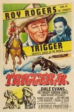 Trigger, Jr. is a 1950 American Western film directed by William Witney and starring Roy Rogers, his horse Trigger, and Dale Evans. It was one of a series of Roy Rogers films produced by Republic Pictures.[2]