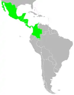 Trigona fulviventris is one of the most widely distributed bees of the genus Trigona and is found in Mexico, Belize, Colombia, Costa Rica, El Salvador, Guatemala, Honduras, Nicaragua, Panama, and the Panama Canal Zone.[1] It is more commonly found at low- and mid-altitudes and has been observed to withstand a wide range of humidities.[2] Habitats in which T. fulviventris colonies make their homes include both tropical dry and tropical wet forests.[7]