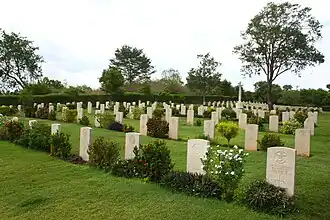 Trincomalee British War Cemetery (also known as Trincomalee War Cemetery) is a British military cemetery in Trincomalee, Sri Lanka, for soldiers of the British Empire who were killed or died during World War II. The cemetery also has graves of Dutch, French, Italian and other allied forces. The cemetery is located on Trincomalee–Nilaveli (A6) Road, approximately 6 kilometres (3.7 mi) north of the town of Trincomalee, on the eastern side. It is one of the six Commonwealth war cemeteries in Sri Lanka, and maintained by Sri Lankan Ministry of Defense on behalf of the Commonwealth War Graves Commission.[2]