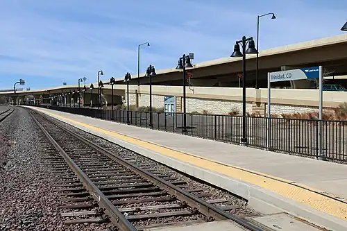 Trinidad station is a train station in Trinidad, Colorado served by Amtrak. It is served by Amtrak's Southwest Chief line. Trinidad station was originally built by the Atchison, Topeka and Santa Fe Railway, however it was not built in the Spanish Mission style, as many former Santa Fe Railroad stations were.