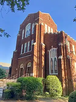 The current church building was built in 1925 by Rose and Rose architects for $77,800.[1] The first service in the new sanctuary took place on October 18, 1925.[3] An education wing was built to the east of the sanctuary in the early 1950s, but suffered significant fire damage on January 15, 1966.[1] It was repaired and, in 2004, a second education wing was constructed.[1]