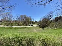 The old Garrison Creek emptied into Lake Ontario at the site of Fort York, and the land north and west of the fort was set aside as a military reserve. As the town of York grew around the fort, the military reserve was gradually sold off in lots to retiring British officers and friends of the military command. Samuel Smith was granted 100 acres (0.40 km2) of land in 1806, which he called Gore Vale after Lieutenant Governor Francis Gore;[1] "vale" referred to Garrison Creek ravine. A portion of Smith's grant later became the park.[1]