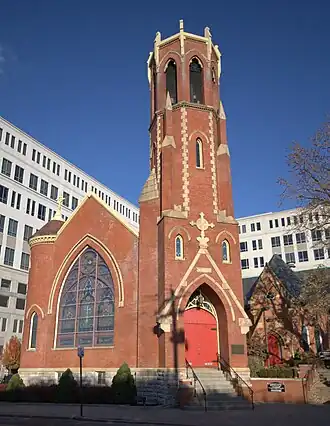 Trinity Episcopal Church is located in Covington, Kentucky, Madison Avenue. This historic church was founded November 24, 1842, in a third floor of a brick building near the Covington market. The cornerstone of the first church was June 24, 1843 and the first service was on June 30, 1844. The church has served the people of Covington and Cincinnati, Ohio through wars and floods. The church is active today, with a large congregation at its Fourth and Madison Avenue location. The Rev. Peter D'Angio is the rector. It is the second largest parish in the Episcopal Diocese of Lexington.[2]