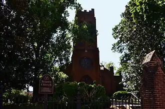 Founded in 1746 as Augusta Parish, Trinity is the oldest church in Staunton and one of the first Episcopal congregations west of the Blue Ridge Mountains. The first building was completed in 1763. English architect James Wood Johns designed the present church, the third on the site, which was built between 1852 and 1855 in the Early Gothic Revival style. Subsequent additions and renovations have significantly altered the original appearance of the simple brick building. The aisles were widened in 1869-72 and the chancel was extended in 1887. In 1907, 1936, 1955, and 2000 the interior was refurbished.[6] The interior was again rebuilt in 1957, due to the addition of a 20-ton organ.[4][7] The church properties underwent a massive renovation in 1999–2000. Air conditioning and new electrical systems were added. The stained glass windows were cleaned, repaired, and fitted with new protective glass. The current organ was installed in 2000, as part of the renovation.[8] The church also offers an outdoor brick labyrinth, which was added in 2010.[9]