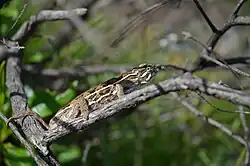 Trioceros is a genus of lizards in the family Chamaeleonidae, the chameleons, native to lowlands and highlands in the African mainland, ranging from Ethiopia south to Mozambique and west as far as Ghana. Trioceros was considered a subgenus of the genus Chamaeleo until 2009, when it was elevated to full genus level.[2]