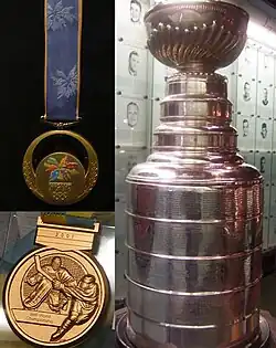 The Triple Gold Club is the group of ice hockey players and coaches who have won an Olympic Games gold medal, a World Championship gold medal, and the Stanley Cup, the championship trophy of the National Hockey League (NHL). The International Ice Hockey Federation (IIHF) considers them to be "the three most important championships available to the sport".[1]