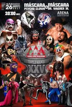 Triplemanía XXV was a professional wrestling event produced and scripted by the Mexican professional wrestling promotion Lucha Libre AAA Worldwide (AAA). The event took place on August 26, 2017, and was held in the Arena Ciudad de México in Mexico City, Mexico. This was the sixth consecutive Triplemanía to be held at the arena. Also, the event was the 25th year in a row that AAA had held a Triplemanía show, and the 31st show held under the Triplemanía banner since 1993. The annual Triplemanía show is AAA's biggest show of the year, serving as the culmination of major storylines and feature wrestlers from all over the world competing in what has been described as AAA's version of WrestleMania or their Super Bowl event.