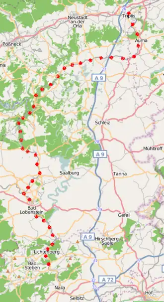 1. ^ "Betreibung der Oberlandbahn zwischen Unterlemnitz und Triptis, response by the Thuringian Ministry for Construction and Transport of 20 April 2008 to the minor question from MP Kalich (of the Left Party.PDS), Thuringian Landtag report 4/1885, p.1" (PDF).