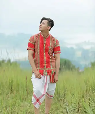 The male counterpart for the loin area is the rikutu and for the upper part of the body is the kamchwlwi borok. Today, however, very few men wear this style of dress, except in rural Tripura and by the working class. Males have adopted more modern dressing styles of the international style gaffa. This is somewhat similar to kurta and dhoti.