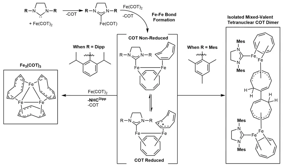- ^ a b Lavallo, Vincent; El-Batta, Amer; Bertrand, Guy; Grubbs, Robert H. (2010-11-25). "Insights Into the Carbene-Initiated Aggregation of [Fe(cot)2]". Angewandte Chemie. 123 (1): 282–285. doi:10.1002/ange.201005212. ISSN 0044-8249.