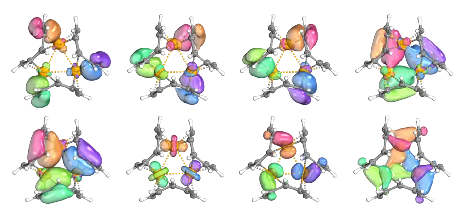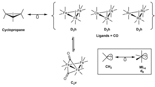 At the time of discovery, it was the only homoleptic trimetallic non-carbonyl cluster featuring hydrocarbon ligands. An isolobal analogy[23] can be made with the related Fe3(CO)10 (μ-CO)2[24] cluster first prepared by Jones and Dewar.[2][19][1]