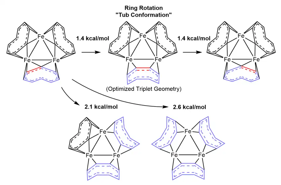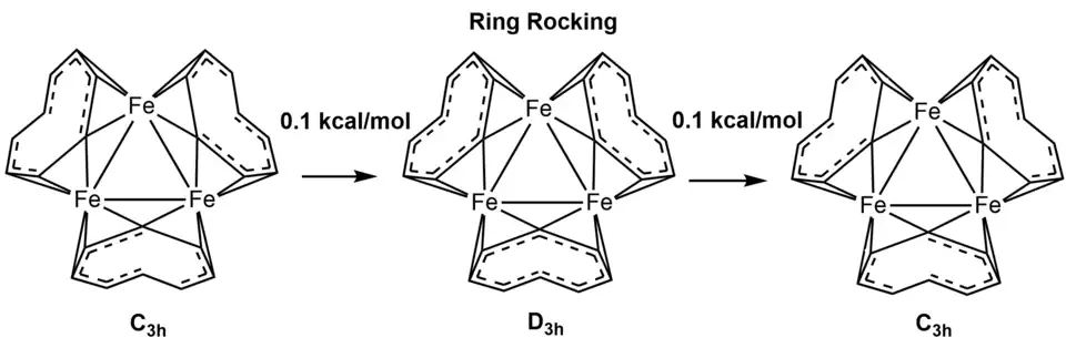 - ^ a b c d e f g h Martinie, Ryan J.; Burkhart, Brandon J.; DeKock, Roger L. (2011-09-07). "Computational Investigations of Ligand Fluxionality in Fe3(C8H8)3". Organometallics. 30 (19): 5196–5201. doi:10.1021/om200561x. ISSN 0276-7333.
