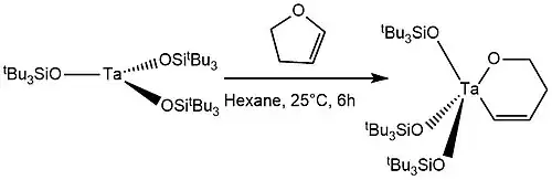 After stirring the mixture of tris(silox)tantalum and 1,2-dihydrofuran in hexane at room temperature overnight, tris(silox)tantalum inserts into the C-O single bond through a manner of oxidative addition:[6]