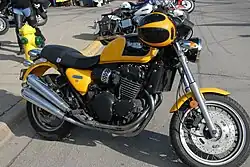 Also included was slightly revised styling, including a 'cheese grater' air filter, twin disc front brakes and fully adjustable sports suspension, added to this were the twin silencers on the one side. Its styling was intended to recall the early 1970s Triumph X-75 Hurricane.