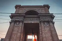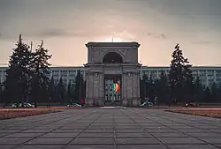 The Triumphal Arch (Romanian: Arcul de Triumf) is a monument situated in Central Chișinău next to the Nativity Cathedral on Piața Marii Adunări Naționale nr. 2 and directly opposite Government House.