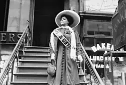 Friganza was civic minded and socially attuned. She aligned herself with women's suffrage and the promotion of a positive female body image.[3] On October 28, 1908, Trixie attended a women's suffrage rally at New York City Hall where she delivered a speech for women's rights. She donated money to the cause and repeatedly went on record as an advocate for women's rights, equality and independence.[3] Her own personal life is consistent with those ideals; having taken her mother's maiden name and refusing to leave her career in spite of marriage, she defied society's proprieties and norms, modeling what Susan Glenn calls "New Woman".