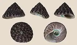 | Five views of a shell of Trochus ochroleucus | |