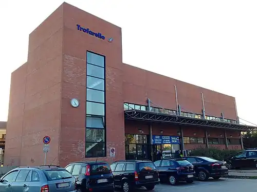 Trofarello railway station (Italian: Stazione di Trofarello) serves the town and comune of Trofarello, in the Piedmont region, northwestern Italy.[1] The station is located at the end of Via Roma, near the large Piazza Europa.