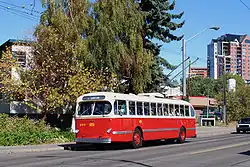 The Edmonton trolley bus system formed part of the public transport network in Edmonton, Alberta, Canada between 1939 and 2009. Operated by Edmonton Transit System (ETS), the system had, at its peak, a fleet of 137[1]: 179 [2] trolley buses, and a total route length of 127 km (79 mi).
