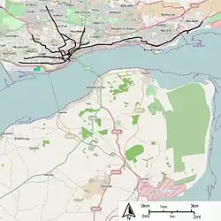 The corporation continued to expand the fleet, adding four top-covered cars in 1916, 14 in 1920/21, nine totally enclosed cars between 1923 and 1925, and ten totally enclosed cars with wider bodies for the Lochee route in 1930. They also started to run motor buses in 1922, which gradually replaced some of the trams, with the Constitution Road route being the first to be replaced by buses on 26 February 1928.[3] Although short, this route included a section with a gradient of 1-in-9, and was operated by the single deck bogie trams, which were powered by four motors.[6] The next route to close was that to Belsize Road, to the east of Dundee, which was replaced by buses on 16 May 1931.[3] This had provided a link to the Dundee, Broughty Ferry and District Tramways system since it opened in 1905, and on which there was through running.[7] This had developed into a through service running from Lochee to Monifieth in 1922, but in 1931 the corporation had bought that entire system, and closed it all on the same day as they closed their link to it.[6]