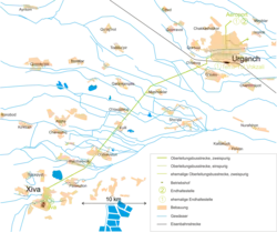 Another, not yet operational section (not shown on the map), branches off immediately after the Khiva terminus, but is not yet connected with the rest of the system.