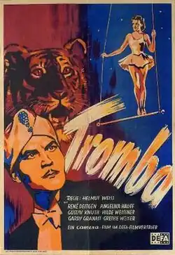 Tromba is a 1949 thriller film co-written and directed by Helmut Weiss and starring René Deltgen, Angelika Hauff and Gustav Knuth. It is a circus film with elements of film noir.[1] It was one of the most popular West German films of the year, suggesting audiences appreciated a shift away from rubble films.[2] It was made at the Bavaria Studios in Munich with sets designed by art director Ernst H. Albrecht. The film was released in the United States in 1952 as Tromba: the Tiger Man by Lippert Pictures.