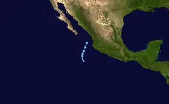 When the storm was declared a depression on June 18, a tropical storm watch was declared by the Mexican Government for the Islas Marías, as well as for areas between Topolobampo and El Roblito in Sinaloa.[6] The captain of the Mazatlán port advised ships to remain at port due to rough seas. A blue alert was declared for Sinaloa due to the possibility of deadly mudslides. Crews throughout the state quickly cleared debris from streams and streets to allow for better drainage. Shelters were prepped for possible evacuees but never opened.[14] Late on June 18, a tropical storm warning was declared for the Islas Marías and the watch along Sinaloa was extended southward to Cabo Corrientes, Jalisco.[15] The following day, the Government of Mexico discontinued the warning for the Islas Marías and the watch for areas south of El Roblito was also discontinued.[16] Upon the storm's sudden dissipation later that day, the remaining watch areas were discontinued.[17]