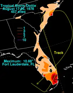 - ^ a b c David Roth. "Tropical Storm Dottie - August 17-25, 1976". Weather Prediction Center. Retrieved 2009-07-05.