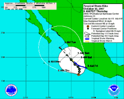 - ^ AGI (2007-10-19). "Alerta Segob sobre intensificación de tormenta tropical "Kiko"" (in Spanish). Reuters. Archived from the original on 2007-10-21. Retrieved 2008-11-17.