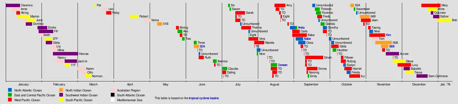 | Tropical cyclones in 1977 | |