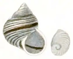 | A live but retracted individual of Tropidophora fimbriata haemostoma, showing the operculum in the aperture | |