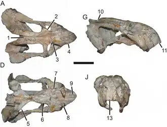 - ^ Kammerer, Christian F.; Angielczyk, Kenneth D.; Fröbisch, Jörg (2011-12-14). "A comprehensive taxonomic revision ofDicynodon(Therapsida, Anomodontia) and its implications for dicynodont phylogeny, biogeography, and biostratigraphy". Journal of Vertebrate Paleontology. 31 (sup1): 1–158. Bibcode:2011JVPal..31S...1K. doi:10.1080/02724634.2011.627074. ISSN 0272-4634. S2CID 84987497.
