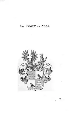 The Trott zu Solz family is a Hessian noble family and a member of the Hessian Protestant Uradel and the Old Hessian Knighthood. It is descended from the knight Hermann Trott, who was mentioned in 1253.