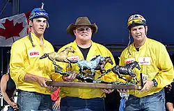 ![]() Troy Dorchester with his outriders winning the 2012 Calgary Stampede Aggregate Title | |